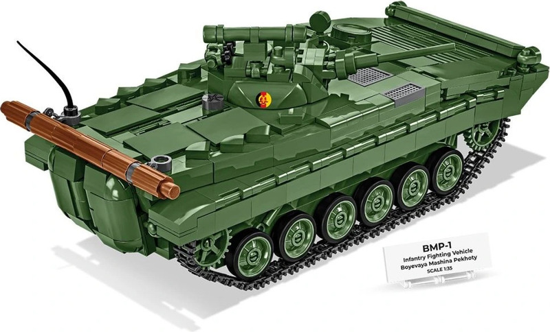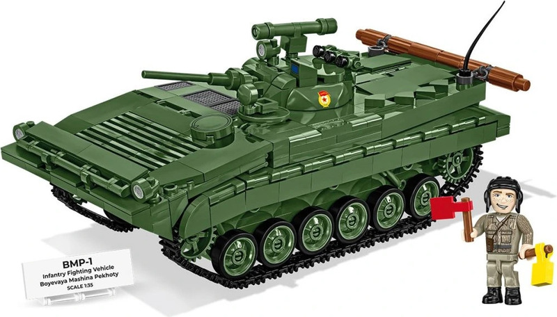 BMP-1, zavedené do služby v roku 1966, bolo prvým sériovo vyrábaným bojovým vozidlom pechoty. Vďaka kombinácii mobility, výzbroje a schopností prepravy vojsk sa rýchlo stalo chrbticou mnohých armád Varšavskej zmluvy. Vyzbrojené kanónom, guľometom a protitankovým raketometom prekonalo schopnosti skorších obrnených transportérov, ako napríklad BTR-50P. Táto sada vám umožňuje znova postaviť tento stroj v historickej kamufláži s dôrazom na každý detail. V Československu sa toto vozidlo vyrábalo licenčne pod označenie BVP-1 alebo OT-90, dostalo niekoľko konštrukčných zmien a vyvážalo sa do ZSSR a ďalších spriatelených krajín.
