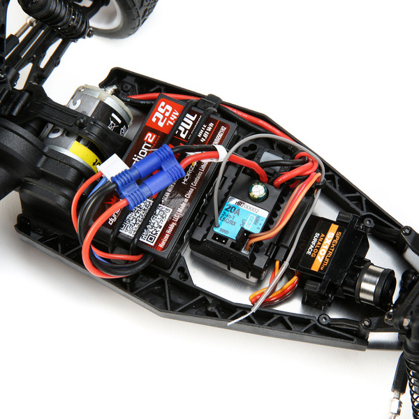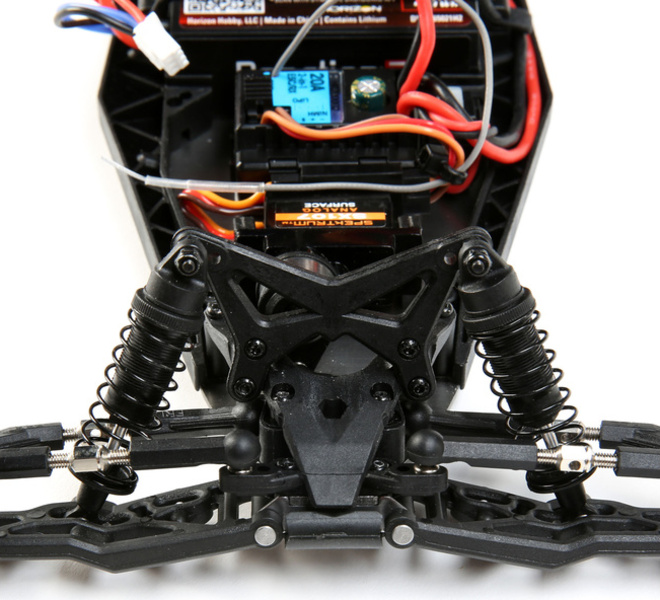 Geometria odpruženia Mini-T 2.0 bola odvodená od konštrukcie auta TLR 22 Buggy 2WD a poskytuje vyvážené riadenie a výbornú trakciu.