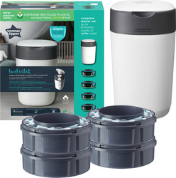 Nový, ekologickejší dizajn koša na jednorazové plienky Sangenic Twist & Click umožňuje bezdotykové balenie použitých plienok. Kôš je vyrobený z viac ako 98 % z recyklovaného a recyklovateľného plastu. Vyberateľná kazeta, ktorá je súčasťou koša, obsahuje 100 % recyklovateľnú PE fóliu GREENFILM™, vyrobenú z obnoviteľného zdroja - cukrovej trstiny. Nepriepustná fólia GREENFILM™ vo výmennej kazete obsahuje antibakteriálnu zložku, ktorá ničí 99 % baktérií. Príjemná citrónová vôňa fólie pomáha chrániť detskú izbu pred zápachom. Vďaka technológii Twist & Click sa plienka v koši zabalí do fólie a pomocou piestu sa zasunie do koša. Plienku do fólie zabalíte otočením mechanizmu pod vekom, kliknutie signalizuje dokončenie balenia a pomáha šetriť spotrebu fólie. Kôš sa stane neodmysliteľnou súčasťou vašej domácnosti po celý čas, keď vaše dieťa používa plienky. Nemusíte sa obávať zápachu v miestnosti, kde je kôš umiestnený, ani toho, že by vaše zvedavé batoľa alebo domáce zviera skúmalo použité plienky. Kôš teda môžete mať vedľa prebaľovacieho pultu v izbe vášho dieťaťa, aby ste mali istotu, že ho máte počas prebaľovania vždy po ruke. V prípade, že je dieťa choré, nemusíte sa obávať šírenia baktérií z použitých plienok na ostatných členov rodiny. Špičkový dizajn koša dokonale doplní váš moderný interiér. Kapacita jednej kazety je až 84 plienok (veľkosti 5-9 kg), takže ak používate 3 plienky denne, jedna kazeta vydrží až jeden mesiac používania. Keďže kôš pojme približne 30 plienok, nie je potrebné ho často vyberať, čo vám ušetrí mnoho ciest do koša. Kôš obsahuje jednu náhradnú kazetu s fóliou GREENFILM™. Náhradné kazety sa predávajú samostatne. Rozmery koša bez veka: Š 28 cm x D 25 cm x V 36 cm