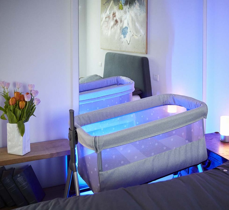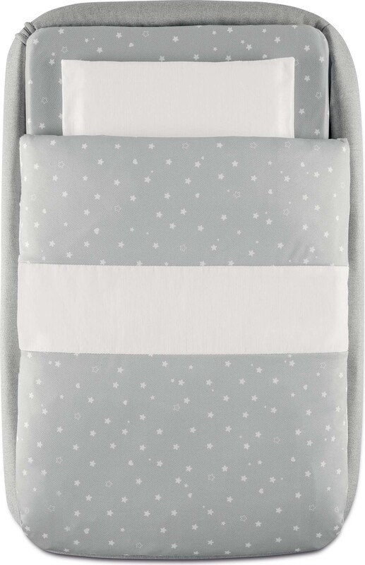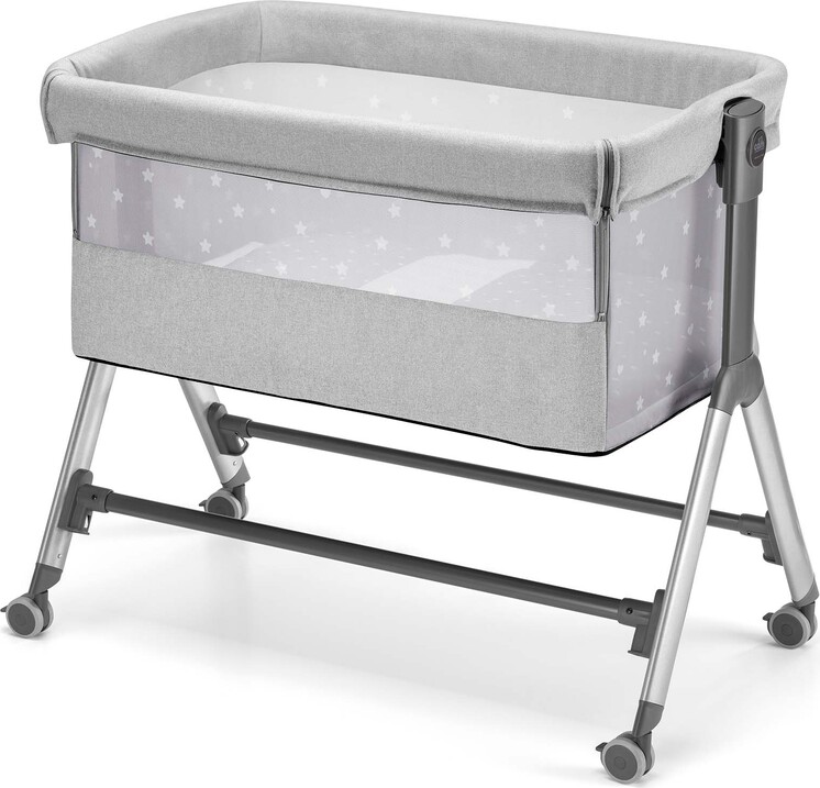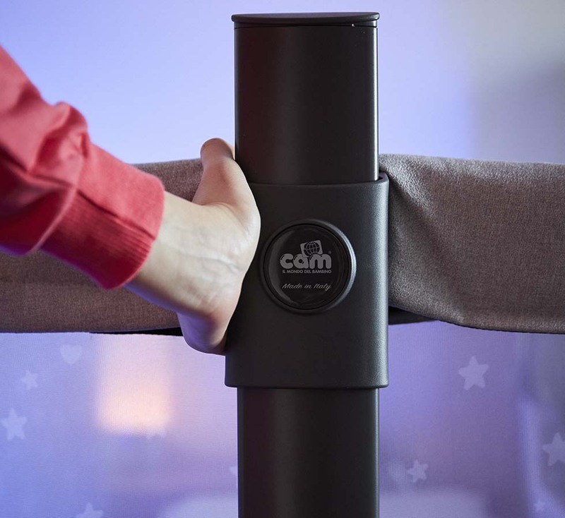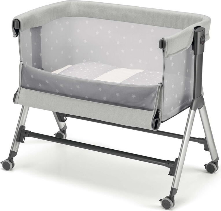 Vďaka odnímateľnej bočnici a možnosti sklopenia až do 8 polôh možno postieľku ľahko pripevniť k akejkoľvek posteli.
