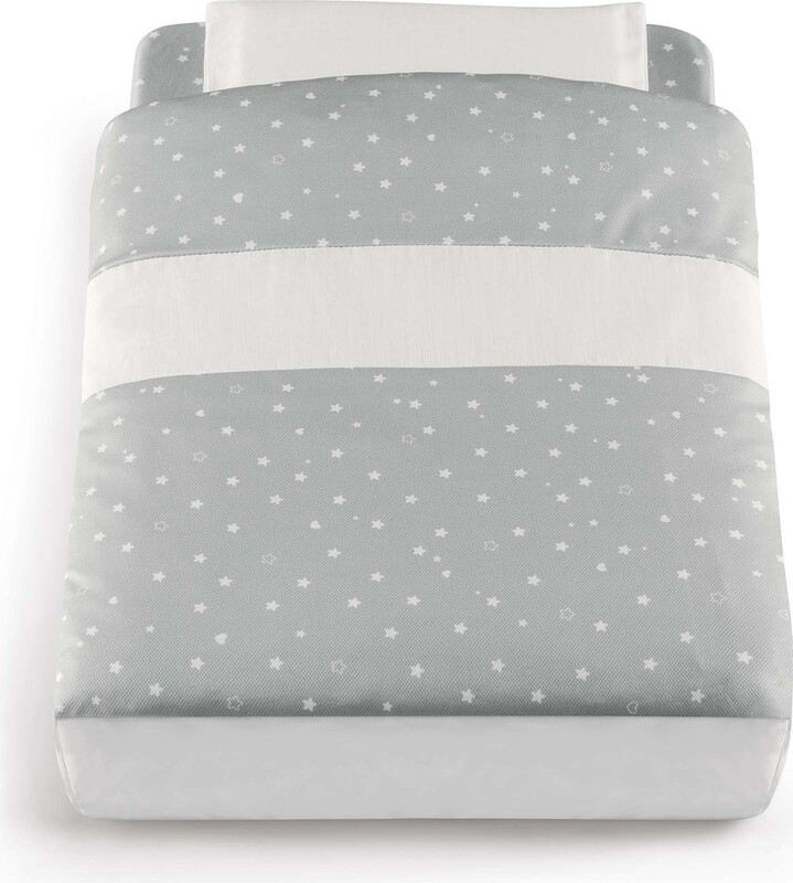 Sada obsahuje: rám postieľky, matrac, bočné lišty, obliečku na vankúš a perinu, prestieradlo