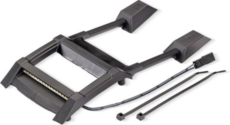 Charakteristika: Zábava, s RC modelom auta Traxxas Rustler 4x4, nekončí ani po západe slnka, vďaka novému výkonnému LED osvetleniu. Originálna sada je presne navrhnutý pre tento model. Vysoko svietivé LED diódy sú integrované do nového predného nárazníka a strešného rámu, vyrobeného najtvrdšieho kompozitného materiálu. Dve intenzívne biele svetelné lišty smerujú dopredu a zadná červená svetelná lišta svieti dozadu. Osvetlenie je napájané priloženým zdrojom, ktorý zaistí stabilné svietenie bez stmievania a blikania. Vlastnosti Efektívne, vysoko intenzívne LED osvetlenie Predný nárazník s integrovanými LED svetlami Strešný panel s integrovanými prednými (bielymi) a zadnými (červenými) svetelnými lištami Napájací zdroj pre stabilný svit bez blikania, či stmievania Jednoduchá inštalácia pomocou priloženého konektora Montážne príslušenstvo Obsah balenia: Balenie obsahuje: Strešný LED panel, nárazník s LED, napájací zdroj 3V/3A, montážne príslušenstvo, návod v slovenčine, manuál EN